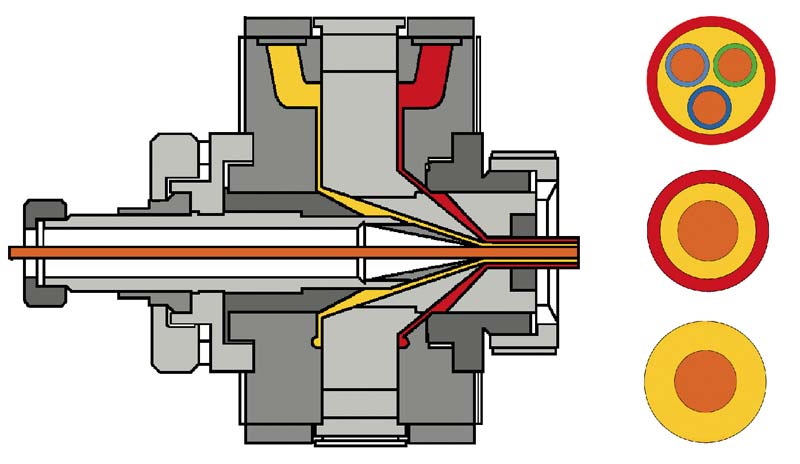 - SZ-strand insulation: Compact head for tandem stranding/insulation of flexible conductors